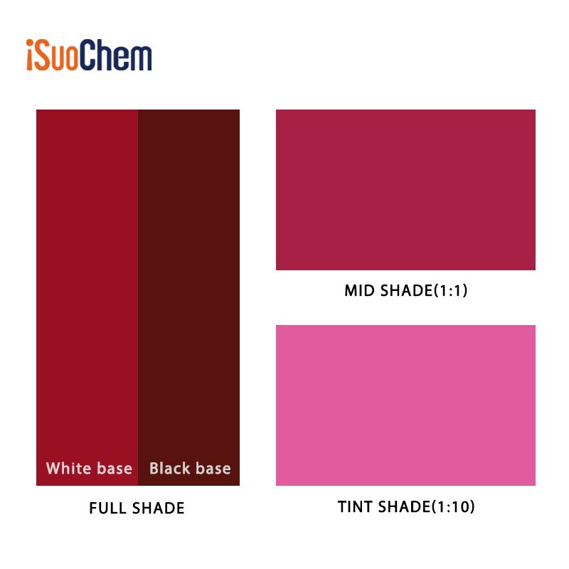 1. يتميز اللون الأحمر 48:2 بـ "قابلية تشتت جيدة" و"قوة تشتيت ممتازة"، مما يضمن تطوير اللون بسهولة وثبات أثناء الإنتاج.2. أحمر 48:2 يظهر لون أحمر أرجواني في حمض الكبريتيك المركز، وينتج راسب أحمر مزرق عند التخفيف؛ ولون أحمر بني في حمض النيتريك المركز؛ ولون أحمر في محلول هيدروكسيد الصوديوم.